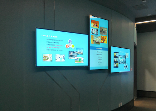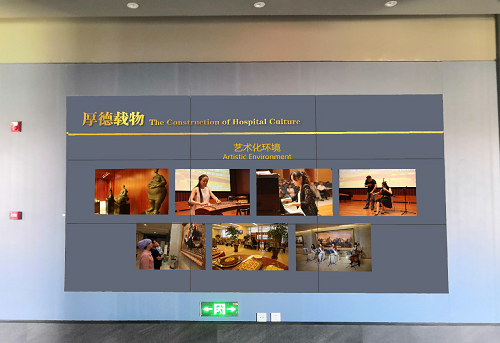 55寸屏幕的藝術(shù)拼接墻,利用屏幕的安裝方向及高度,勾勒出不同時(shí)代的藝術(shù)輪廓,形象的展示出醫(yī)院過去、現(xiàn)在和未來的發(fā)展,顯示不同時(shí)期蘭州當(dāng)?shù)丶搬t(yī)院建筑的老照片、不同時(shí)代醫(yī)院代表醫(yī)生、院長的事跡介紹、未來新院區(qū)的設(shè)計(jì)鳥瞰圖、未來醫(yī)院醫(yī)療技術(shù)等。
