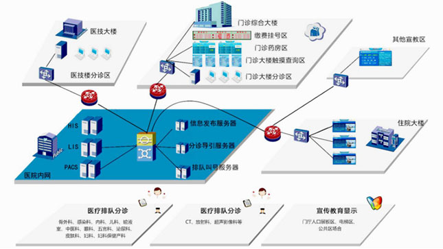 信息化技術(shù)在醫(yī)療領(lǐng)域的推廣和應(yīng)用日新月異,醫(yī)療信息化建設(shè)已成為現(xiàn)在以及未來醫(yī)院發(fā)展戰(zhàn)略的制高點。在當(dāng)前新形勢下,將傳統(tǒng)醫(yī)院逐步轉(zhuǎn)換為數(shù)字醫(yī)院已成為迫切需要。醫(yī)院分診系統(tǒng)、醫(yī)院信息發(fā)布系統(tǒng)、醫(yī)院互動導(dǎo)視系統(tǒng)、自動醫(yī)療系統(tǒng)、 醫(yī)院病房呼叫系統(tǒng)等都包含在數(shù)字醫(yī)院范疇內(nèi)。