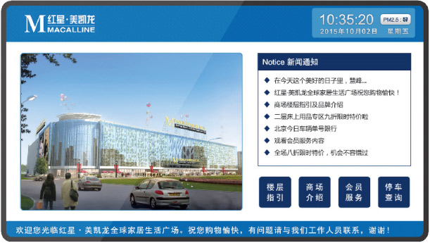 商場超市多媒體信息發(fā)布系統(tǒng)其應用包括液晶屏上的宣傳、促銷信息展示,液晶海報,3D觸摸導購等。具體應用如下: