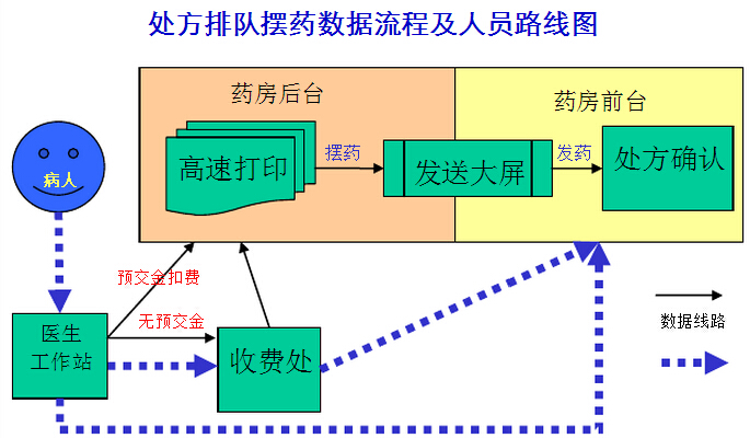 醫(yī)院門診藥房取藥是醫(yī)院病人排隊(duì)和等候時間最長的地方,如何實(shí)現(xiàn)藥房取藥不排隊(duì),提高醫(yī)院門診藥房工作效率,是目前醫(yī)院提高效率的新課題。本公司廣泛征集專家和病人意見,經(jīng)領(lǐng)導(dǎo)和技術(shù)人員反復(fù)討論,提出了后臺擺藥處方排隊(duì)的設(shè)想,經(jīng)過技術(shù)人員的努力徹底取消了病人在藥房擺隊(duì)的現(xiàn)象,具體做法:在病人未到之前就后臺傳送處方提前擺藥,有LED數(shù)碼顯示屏或電視屏幕加語音通知病人前來取藥,改變了傳統(tǒng)的先收處方后發(fā)藥的工作模式,如果病人處方還沒擺好,病人只要坐在座位上等侯屏幕顯示或呼叫取藥。所以后臺擺藥應(yīng)用的主要目的就是取消藥房排隊(duì);其設(shè)計(jì)思想就是藥房不再預(yù)先接收病人手中的處方,由后臺自動傳送、打印處方、后臺擺藥,前臺核對發(fā)藥。